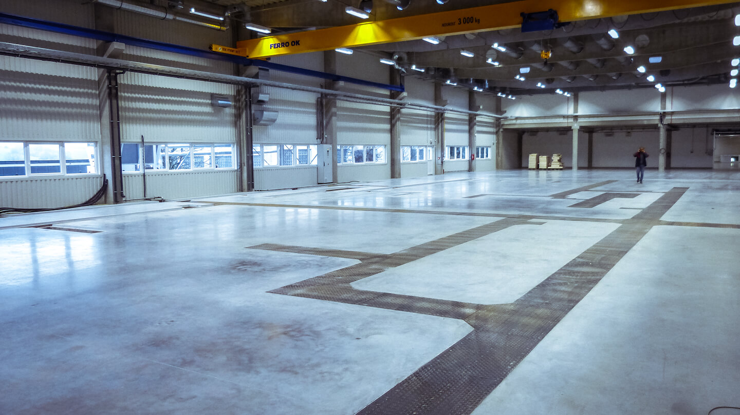 Realizace průmyslových podlah s povrchovou úpravou Sikafloor 2-Syn Top a  LENA P122QS v RIMOWA City Pelhřimov ve výměře 12.000m2